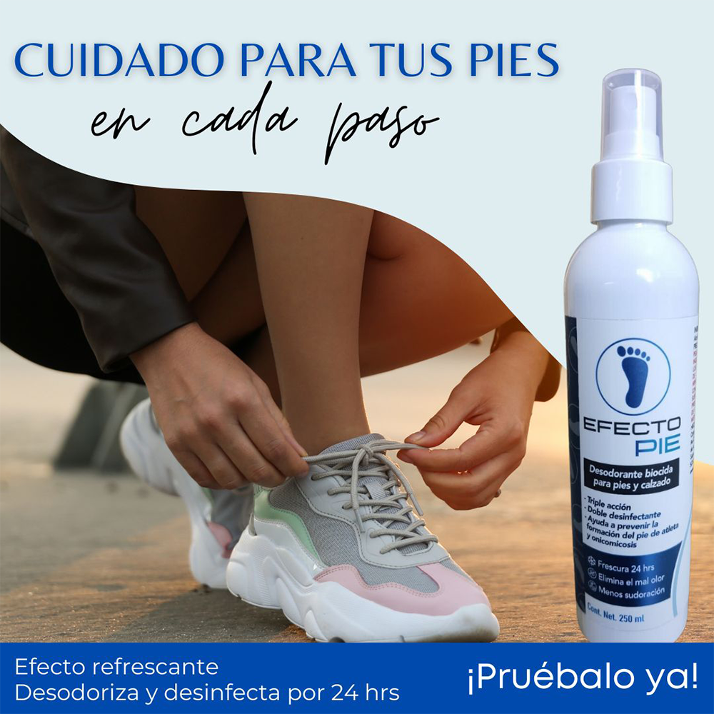Somos una empresa Méxicana comprometida en dar soluciones que prevengan afecciones en nuestros pies y calzado, al mismo tiempo brindando un apapacho en cada aplicación. Por ello hemos desarrollado nuestra fórmula biocida con los más altos estándares de calidad brindando los siguientes beneficios; actúa como bactericida, fungicida, efecto antimicrobiano en pie de atleta y hongos. Además de su peculiar frescor brindando descanso.